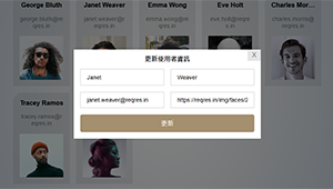 使用 RESTful API 與後端進行資料溝通,以進行資料的新增、更新、讀取、移除。